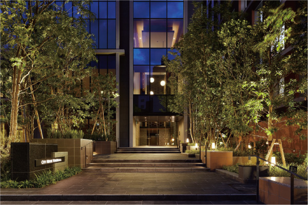 横浜駅周辺の新たな価値創造と魅力向上が求められるエリアに位置する集合住宅です。商業施設が密集する駅前周辺において、光と緑と風を感じられるオープンスペースをつくり、街にゆとりをもたらしたいと考えました。川からの浸水防止の高低差を利用して人々が気軽に座れるベンチや大階段をつくり、潤いある親水空間となる広場を街に提供しています。